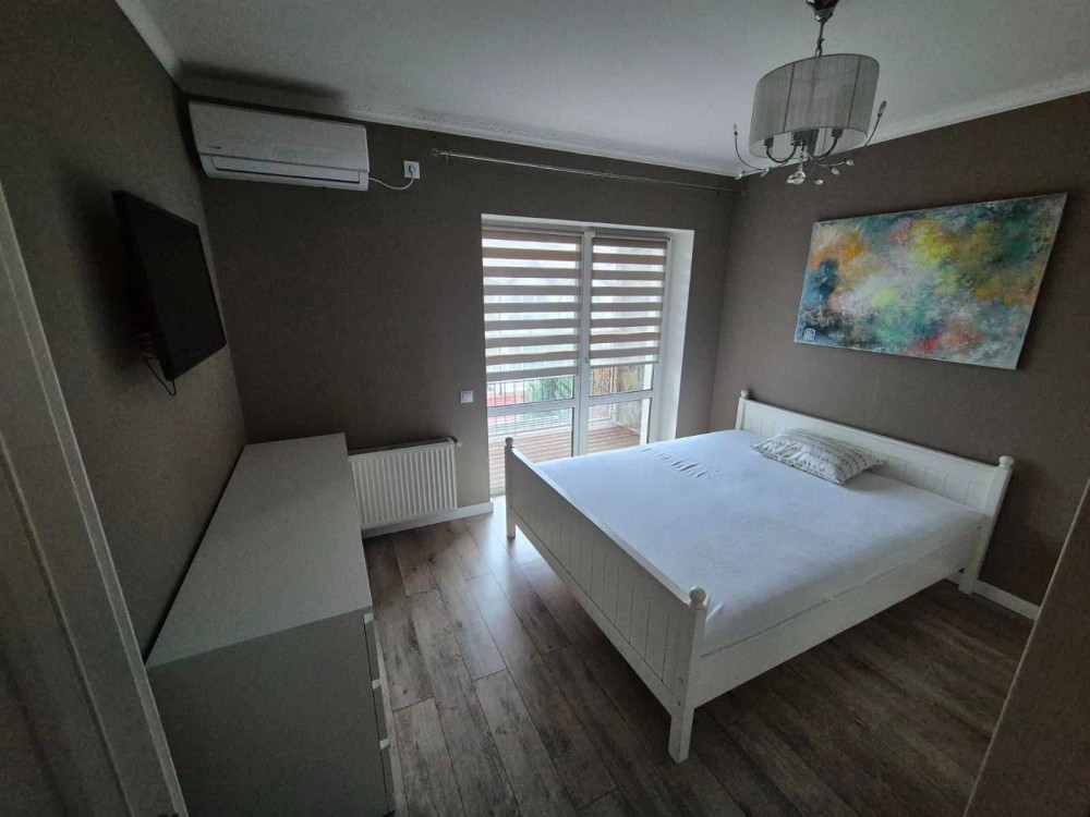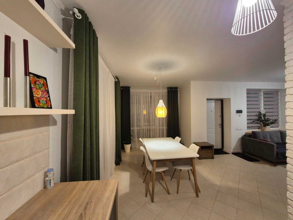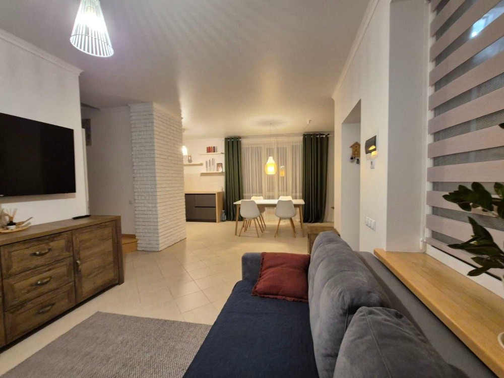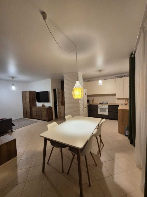 • Простора кухня-вітальня з сучасною вбудованою кухнею, посудомиючою машиною, холодильником, газовою поверхнею, духовогою шафою, мікрохвильовкою, електрочайником і телевізором.