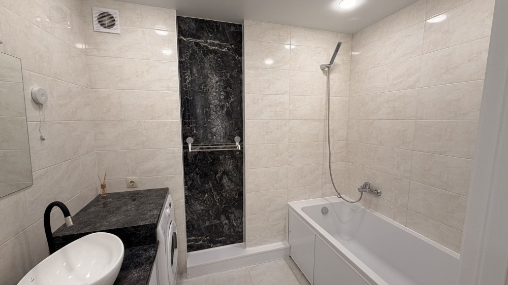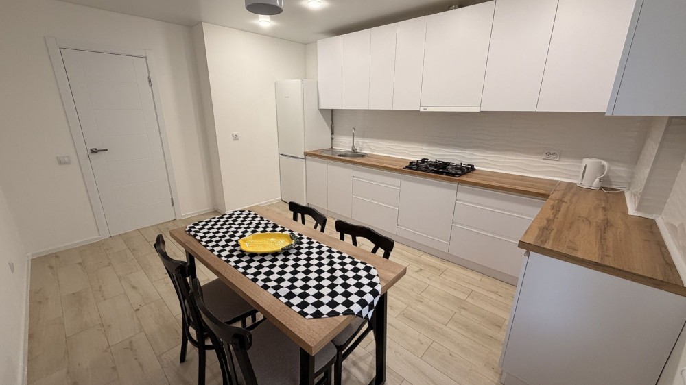 У квартирі виконано сучасний ремонт, вона повністю мебльована та готова до проживання. Упорядковані всі необхідні зручності: холодильник, пральна машина, доступ до швидкісного інтернету. Також є просторий балкон з красивим краєвидом на місто, що додає комфорту.