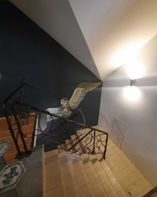 Діючий камін у вітальні та декоративний камін у санвузлі.