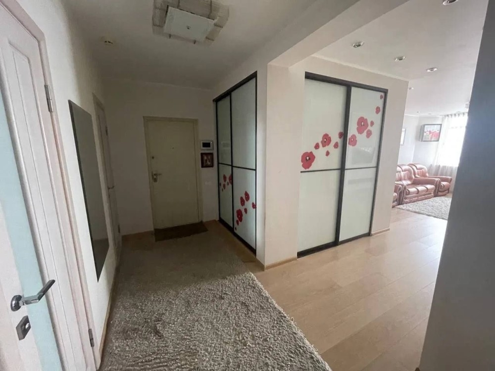 Квартира складається з залу, дві спальні, передпокій, кухня-столова, окрема гардеробна кімната, кабінет, кладовка.