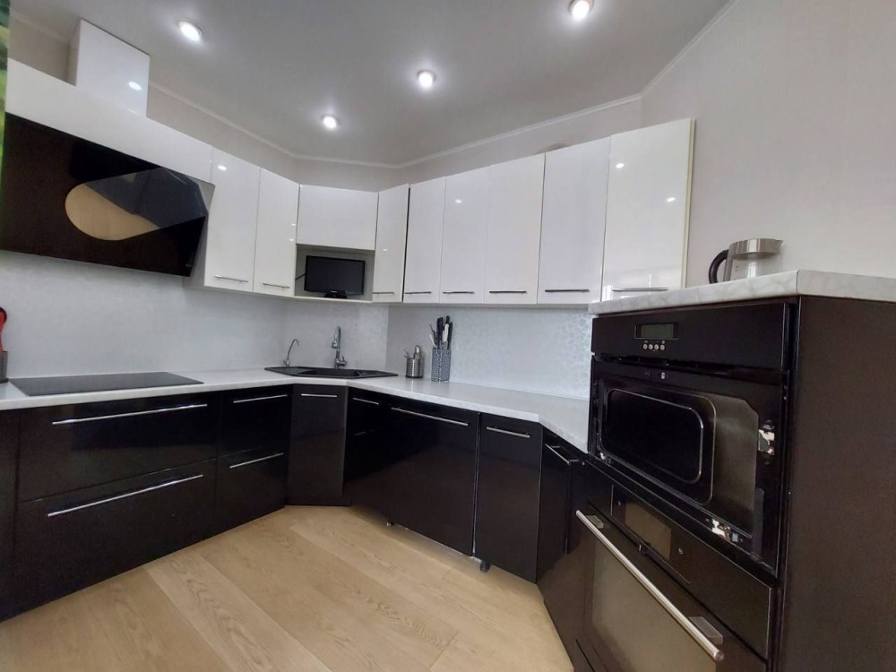 (Укомплектована побутовою технікою: холодильник, пральна машинка, посудомийка, варильна поверхня, духова шафа, мікрохвильовка, фільтри для води, бойлер, 3 кондиціонери.)