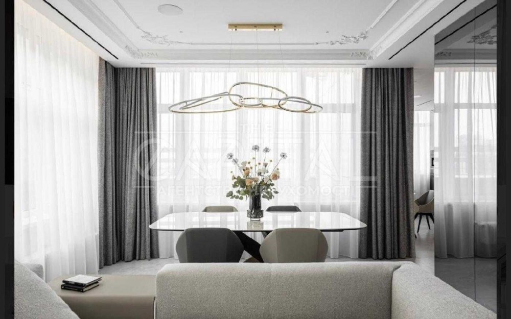 Пропонується стильний пентхаус в ЖК «Новопечерські Липки». Загальна площа пентхаусу складає 185 м2. Він має авторський ремонт відомого дизайн-бюро та чудовий панорамний вид на Липки.