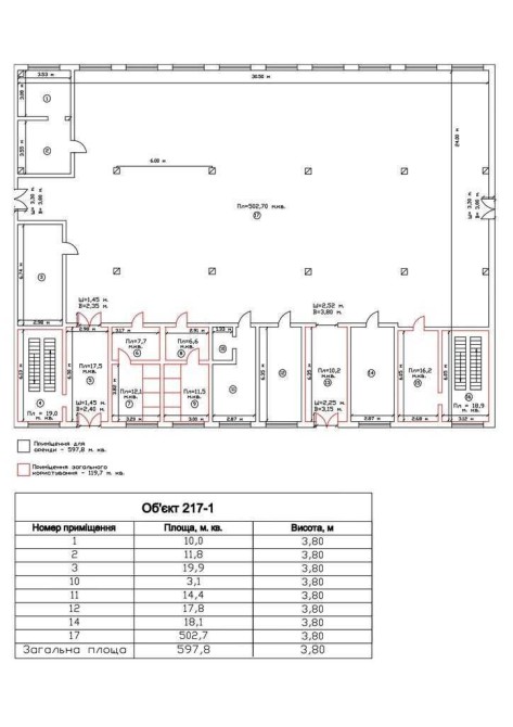 В приміщені є підсобні приміщення та санвузли.