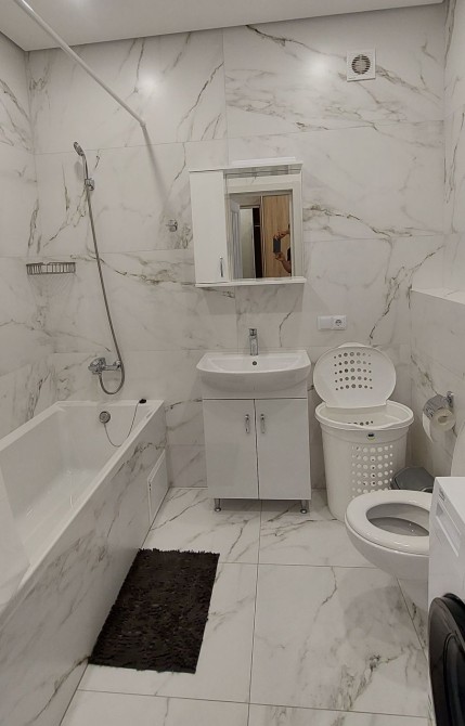 В квартирі є всі необхідні меблі та техніка: кондиціонер, пральна машина, електрочайник, мікрохвильова піч, телевізор, холодильник. Двоспальне ліжко, електричний котел та бойлер. Ціна: 480дол + комунальні послуги. Умови: без тварин.