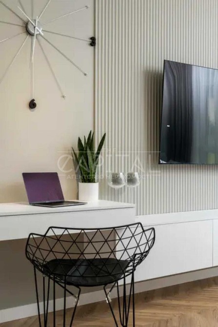 В квартирі виконано дизайнерський ремонт та обладнано: холодильником, духовою шафою, посудомиєчною машиною, електроплитою, витяжкою, пральною машиною, телевізором, інтернетом та домофоном.