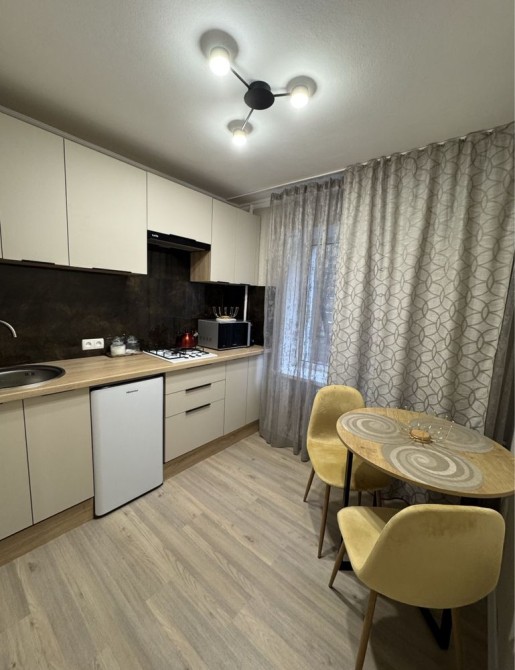 Вбудована кухня з усією необхідною технікою.