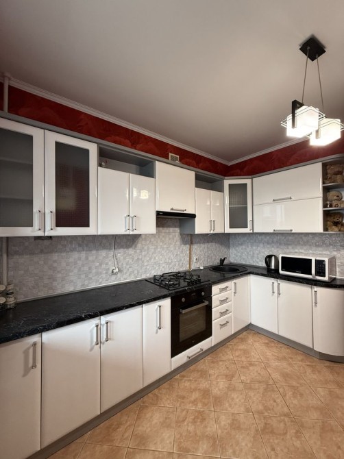 • Квартира мебльована усіма необхідними меблями та технікою (холодильник, духова шафа, варильна поверхня, мікрохвильова піч, витяжка, пральна машина, телевізор, велика шафа-купе, зручний диван, комод, обідній стіл та стільці,тощо)