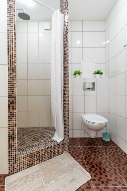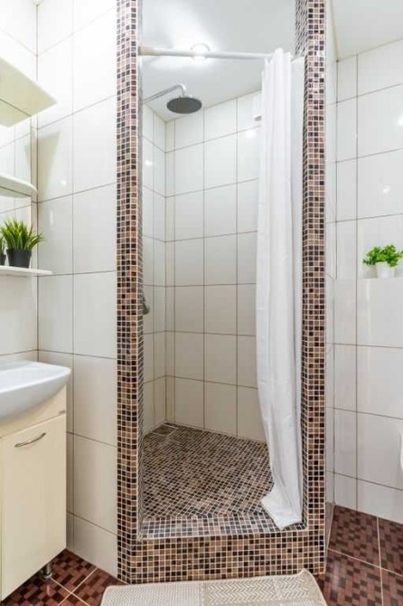 -Душевая кабина, стиральная машина, полотенца, шампунь, мыло, фен, сушилка, утюг, гладильная доска.