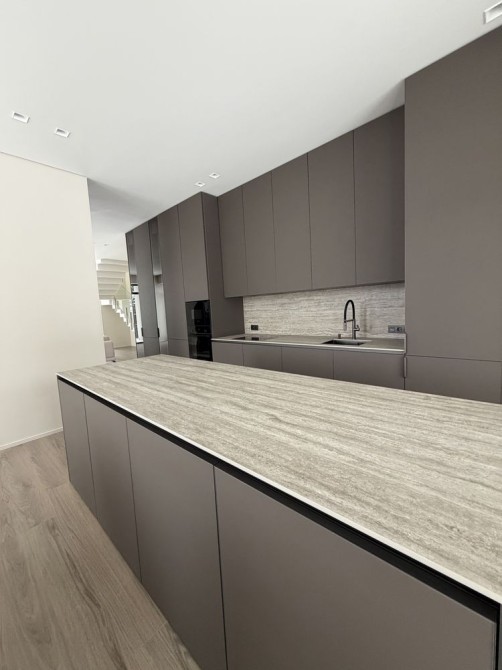 Планування продумане до дрібниць: простора кухня-вітальня для сімейного відпочинку та прийому гостей, кухня з кладовою, 3 окремих спалень, 2 санвузли, гардеробна та технічні приміщення. Вихід на терасу створює ідеальне місце для ранкової кави чи вечірнього відпочинку.