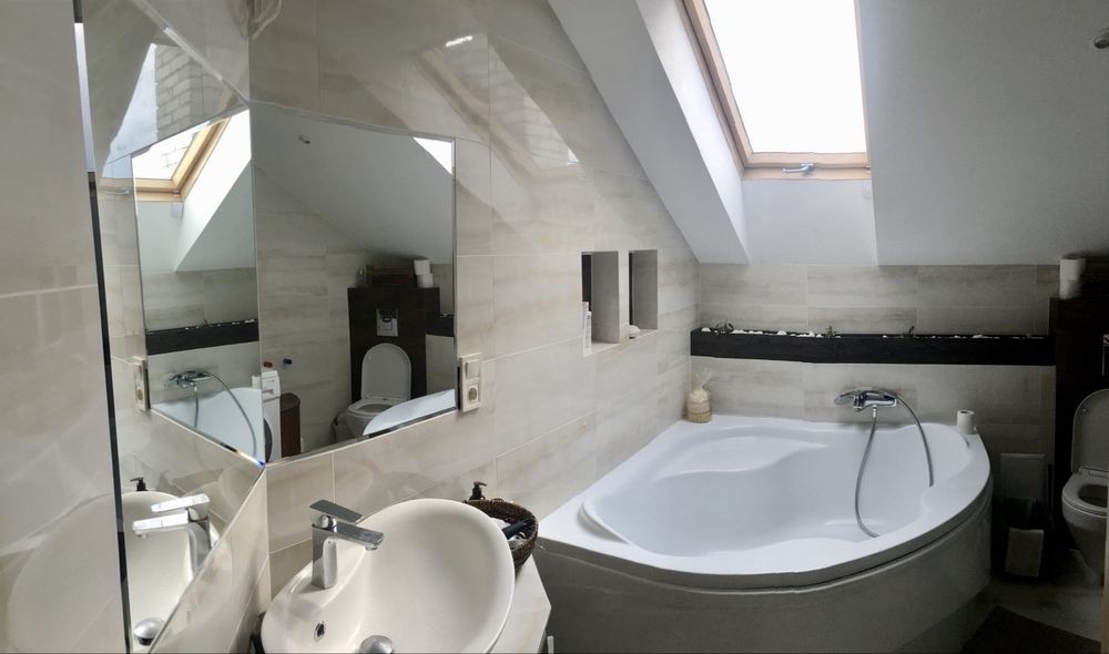 • Велика ванна кімната 7 м² з кутовою ванною та душовою кабіною