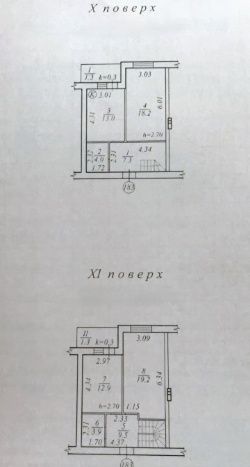Квартира расположена в 2х уровнях на 10 и 11 этаже 11ти этажного дома.