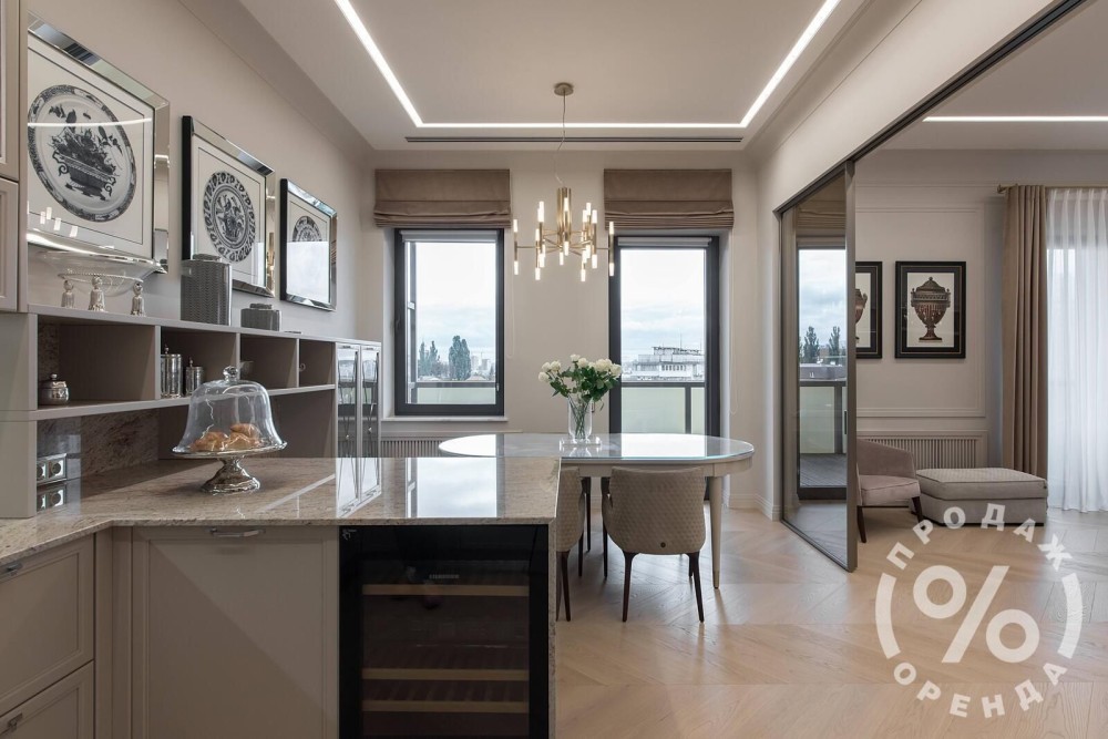 Пентхаус вашої мрії у самому серці Печерська — на вулиці Глазунова (Дмитра Годзенка), 13. Простір площею 228 м² із власною терасою 30 м² і панорамним краєвидом, від якого справді перехоплює подих.