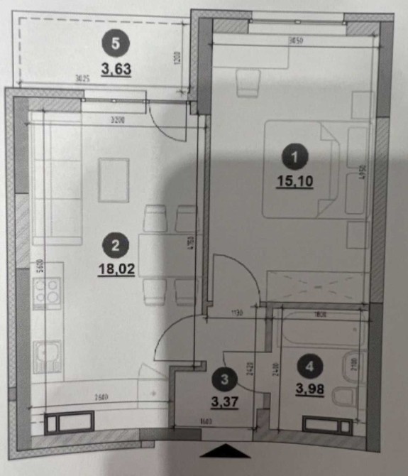 • Общая площадь 44 м2