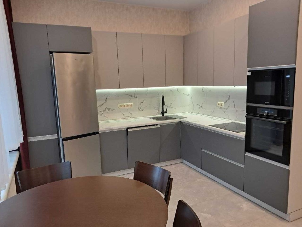 Кучмин Яр провулок, 4.(провулок Кудряшова 10 Д). Заїзд з провулку Кудряшова. Тихий зелений район біля Солом’янського ландшафтного парку. 3-й поверх п’ятиповерхового клубного будинку. Квартира 64 кв.м., спальня 17 кв.м., вітальня 20 кв.м., кухня-студія 21 кв.м. Свіжий ремонт, ніхто не мешкав. Зручне планування. Техніка Gorenje ( бойлер 80 л, посудомийка, холодильник, варильна поверхня, духова шафа). Пральна машина Samsung. В кімнатах кондиціонери. Кухня, коридор, ванна кімната- тепла підлога. Ортопедичний матрац на двоспальному ліжку. Розкладний диван. 2 шафи-купе. Сонцезахисні ролети. Відеодомофон. Роутер. В будинку ліфт, просторі спільні тераси для відпочинку, укриття, котельня, резервне живлення. В пішій доступності супермаркети Сільпо, Новус, ТРЦ, кав’ярні, кафе, банкомати, аптеки, парк.