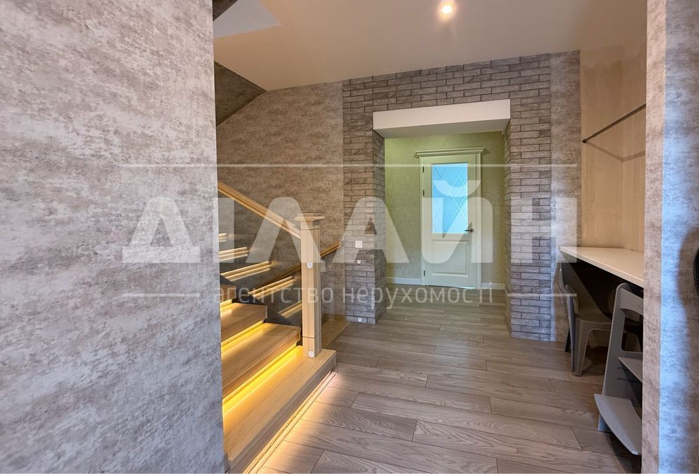 Монолітні перекриття. Утеплені стіни + облицьована цегла. Дах - полімерна черепиця. Оздоблення та інтер'єр виконані за авторським проектом. Висока стеля 3 . 1 м . Панорамні вікна, 2 балкони + тераса. Цоколь з окремим входом. В обробці використані лише дорогі будматеріали. Вся столярня, двері-масив ясена. Сходи бетонні зі вставками дерева та колінного скла. Побутова техніка від провідних світових брендів.