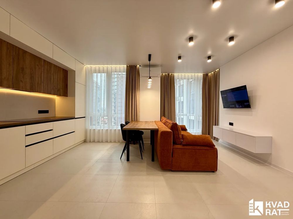 Квартира облаштована всіма меблями та технікою, готова до проживання.