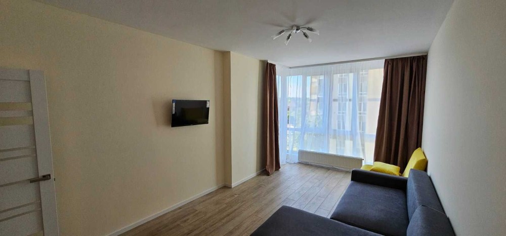 Також придбано новий посуд і столові прибори. Є підсвітка робочої поверхні, розкладний стіл і зручні м’які стільці, розкладний диван із нішою для зберігання. З кухні вихід на відкритий балкон із видом на сосни. Вікна квартири виходять на захід, відкриваючи гарний вид на захід сонця.