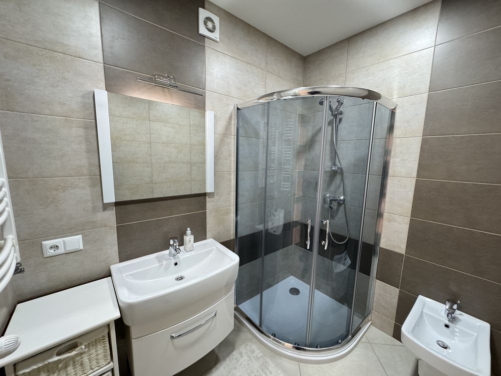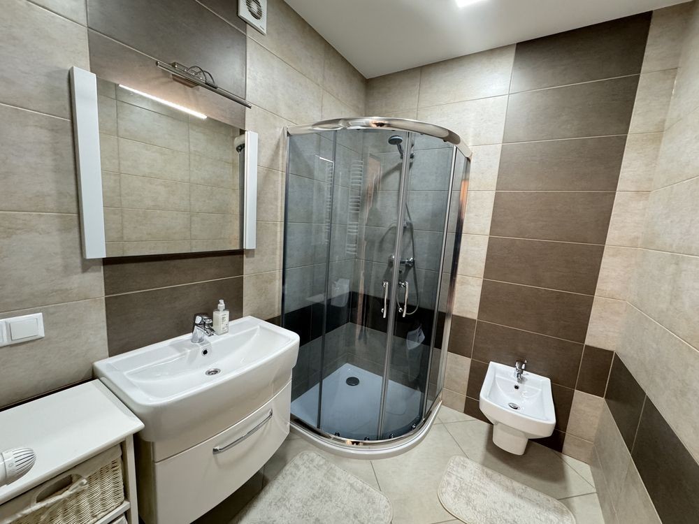 • Сучасний санвузол з душовою кабіною та біде.