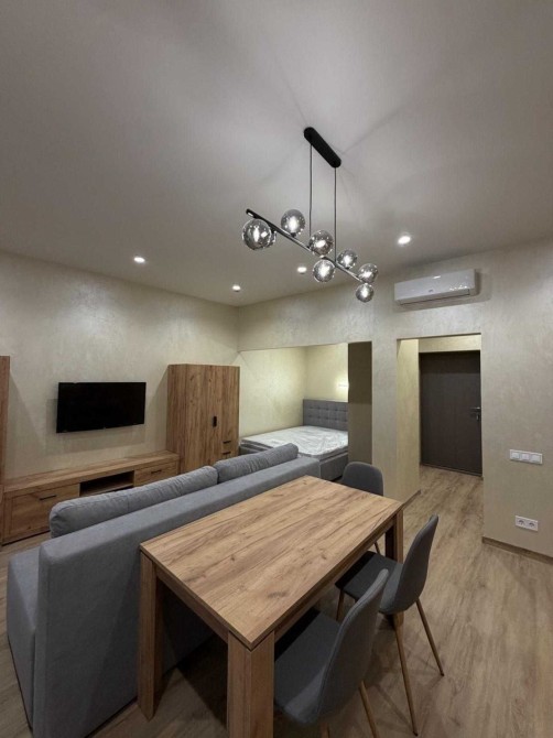 Повністю мебльована, вся техніка: посудомийна машина, мікрохвильовка, телевізор, зона відпочинку та зона для роботи, нове двоспальне ліжко з матрацом.