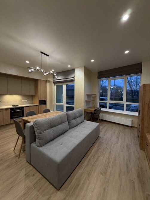 Вдале планування: кухня-вітальня, велика тераса, санвузол, гардероб, просторий передпокій.