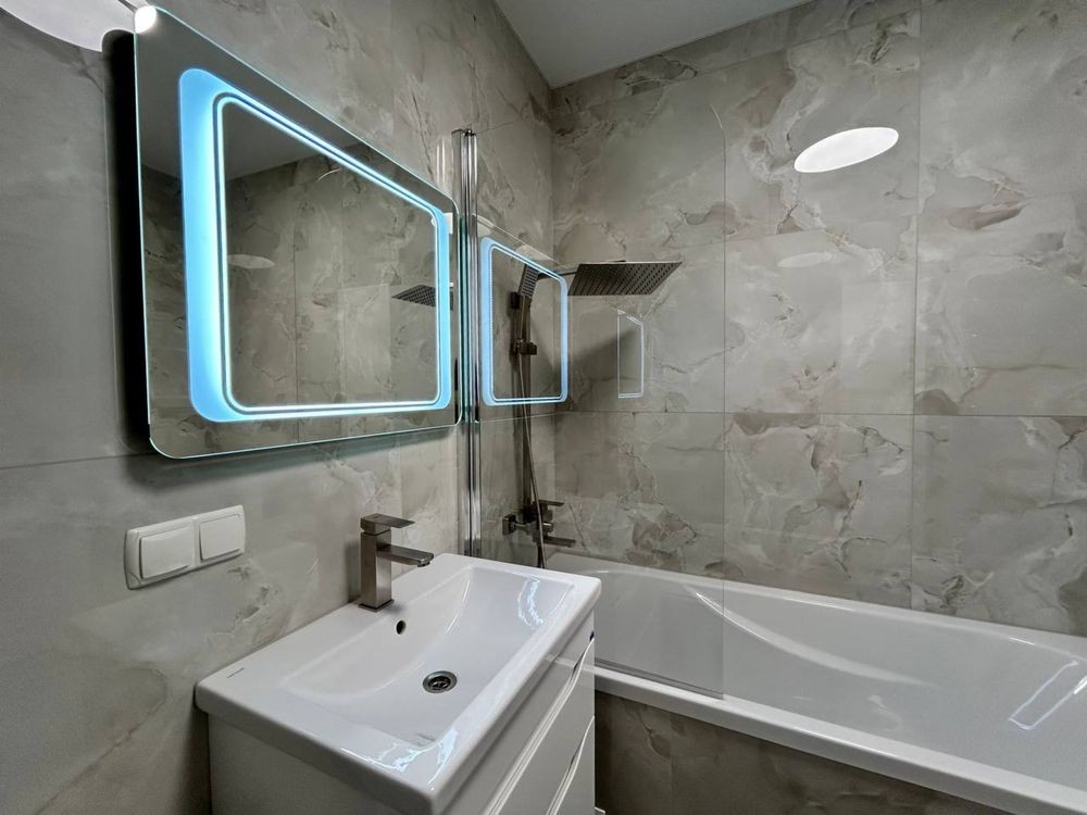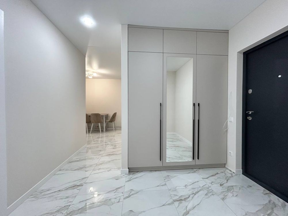 Функціональне планування: велика кухня 18 м2 із просторим відкритим балконом, який виходить у внутрішній двір. Окремі дві кімнати, великий зал із розкладним диваном та затишна спальня кімната, де також є свій куточок бʼюті зони. Суміжний санвузол із ванною та тропічним душем. Та простора вхідна зона.