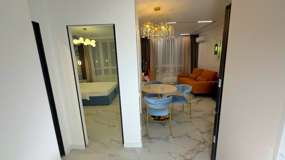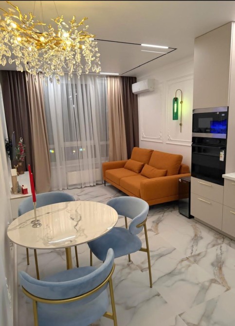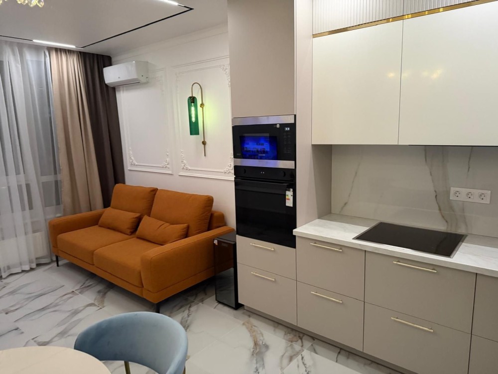 Квартира: - новий дизайнерський ремонт, - велика студія з сучасною кухнею, окремою зоною для прийому їжі та зоною відпочинку - окрема спальня з великим двоспальним сучасним ліжком, - 2 зони ТВ, - просторий санвузол з окремо стоячою ванною, - велика шафа в спальні та гардеробна в передпокої, - ортопедичний матрац, - двохспальне ліжко з підйомним механізмом( є ніша для зберігання), - якісний розкладний диван з ортопедичною основою( Veko) Техніка: - індукційна плита - духова шафа, - вбудована мікрохвильова піч, - великий холодильник з дисплеєм, - бойлер на 100 л., система "Антипотоп", - TV , смарт - WI-FI роутер, інтернет працює при блекауті, - прально-сушильна машина, - 2 інверторні кондиціонери з функцією обігріву,
