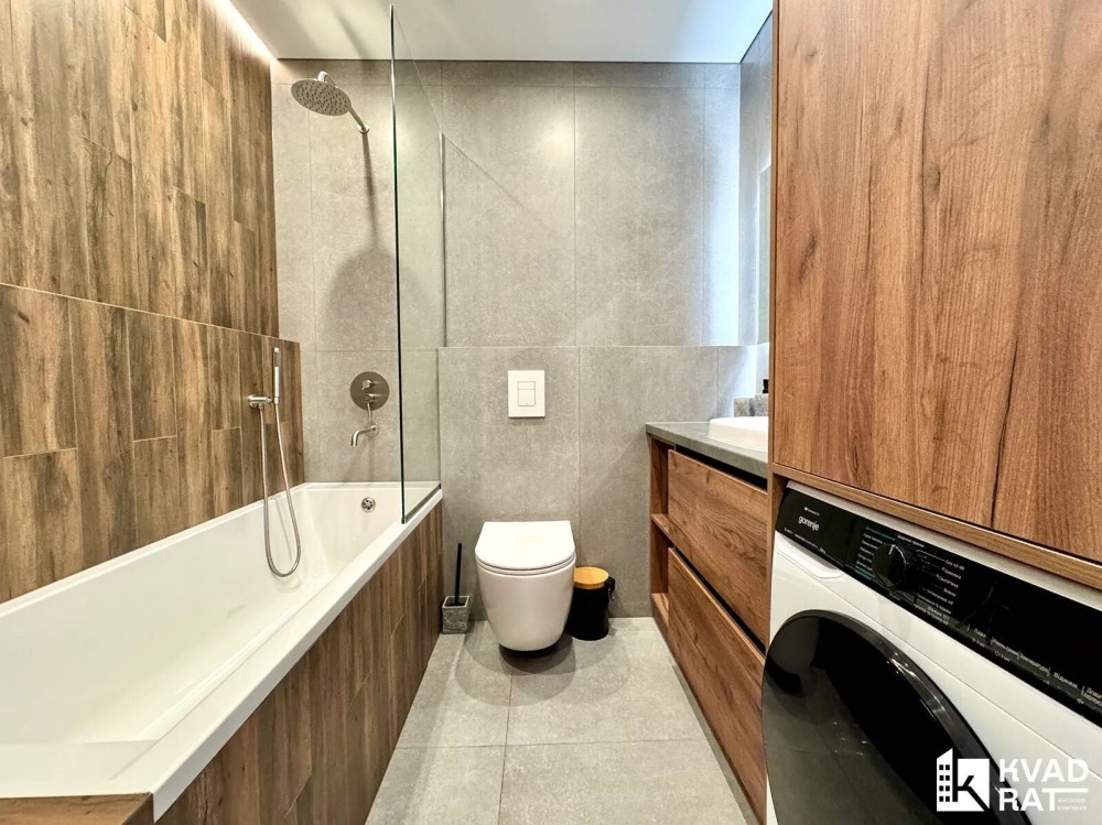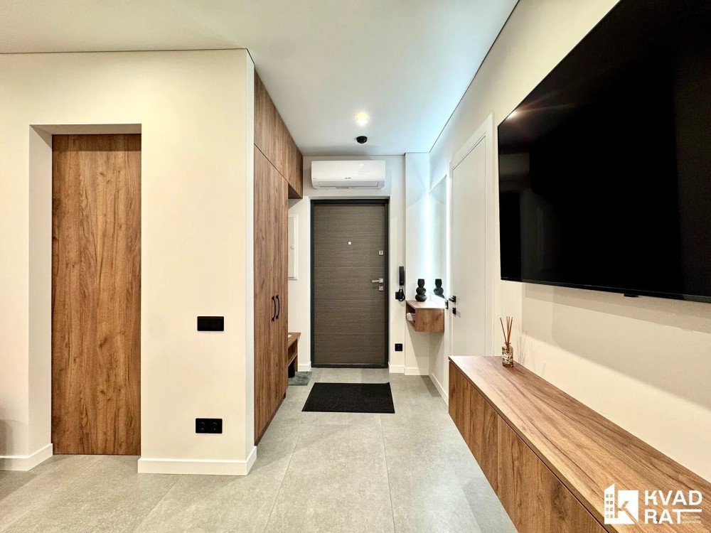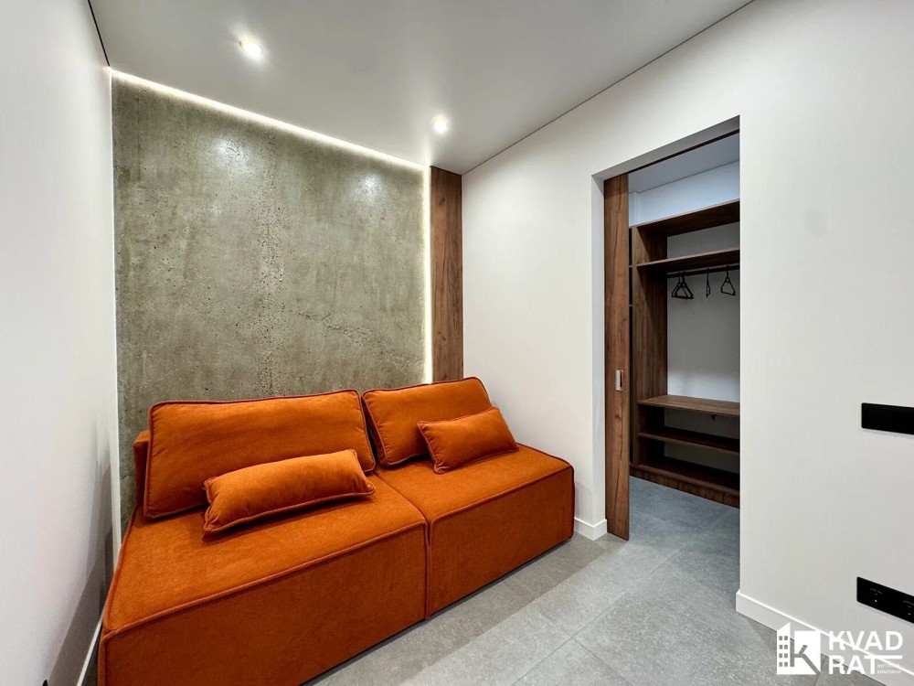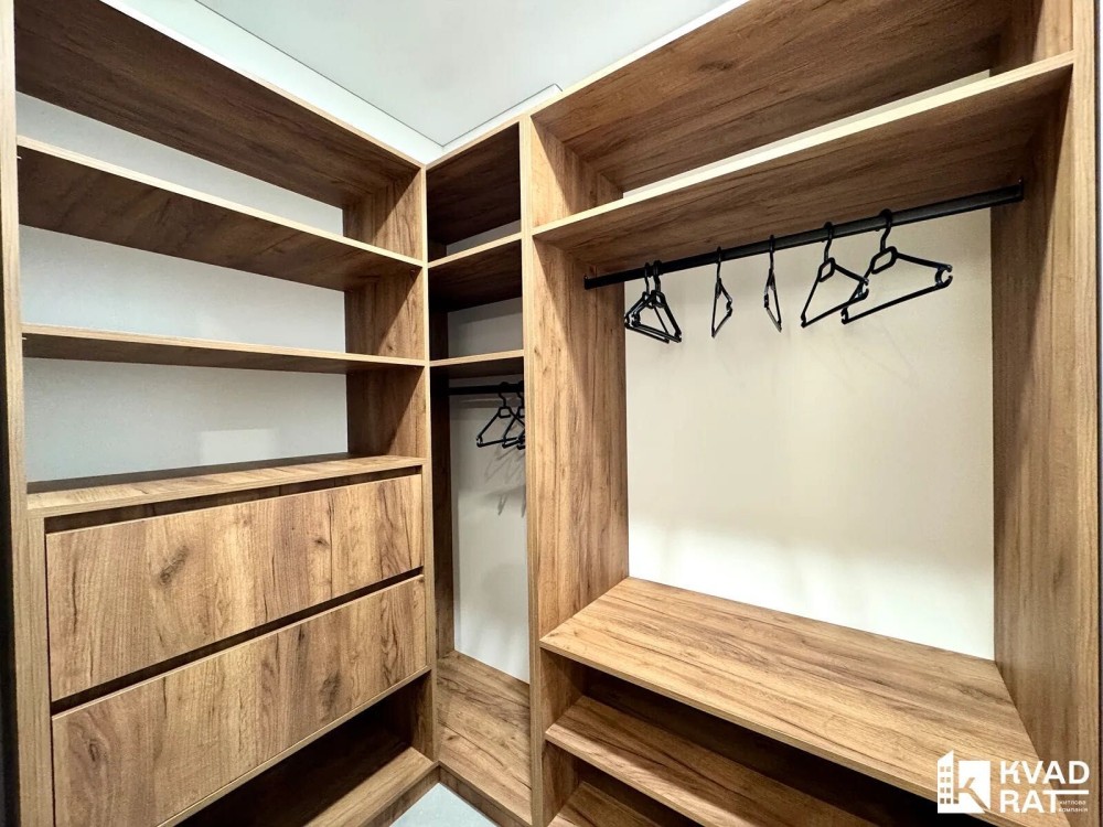 Також у квартирі є гардеробна кімната та розкладний диван .