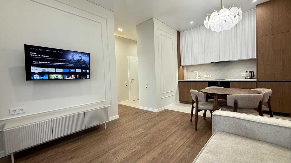 У квартирі виконано стильний ремонт із використанням екологічних та натуральних матеріалів, що відповідають європейським стандартам якості.