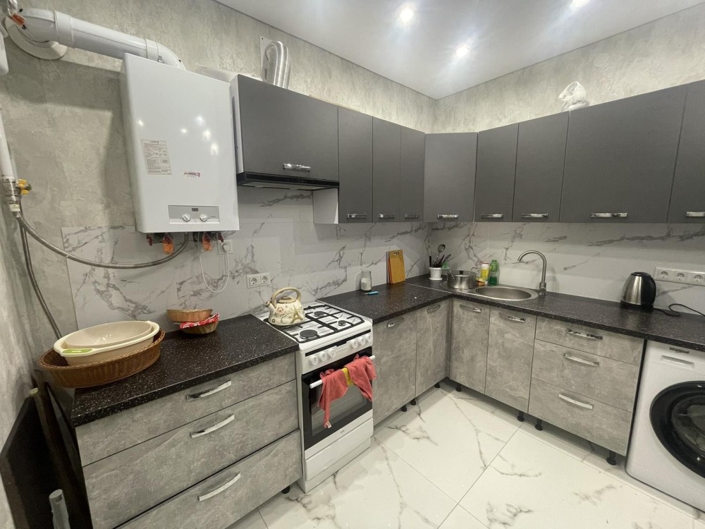 Квартира укомплектована новой мебелью и бытовой техникой.