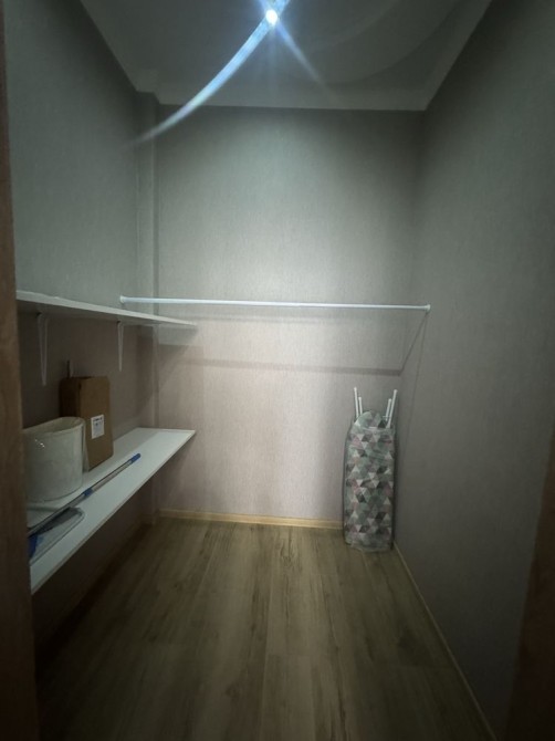 В спальне удобный диван , тв смарт и гардеробная