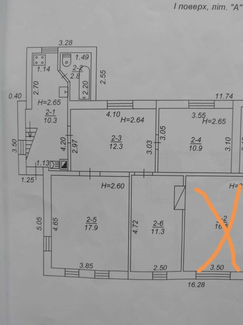Вітальня з кухнею - 10.3 кв.м., санвузол 2,8 кв.м., 1 к-та – 17,9 кв.м., 2 к-та - 12.3 кв.м., 3 к-та – 10,9 кв.м., 4 к-та - 11.3 кв.м. Літні (не опалювані) приміщення 2-го поверху: коридор 10,8 кв.м., 1 к-та 15,2 кв.м., 2 к-та 13,5 кв.м.