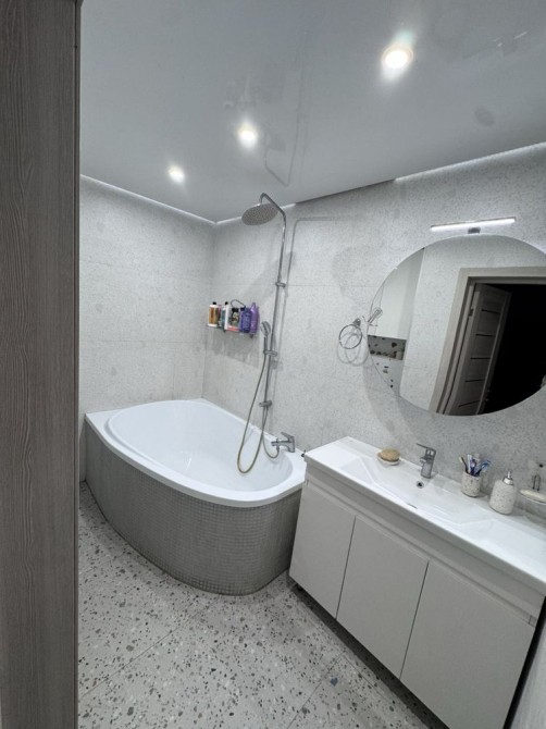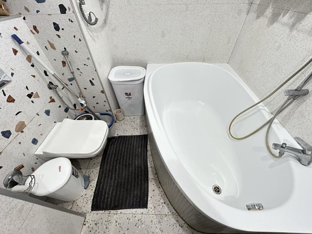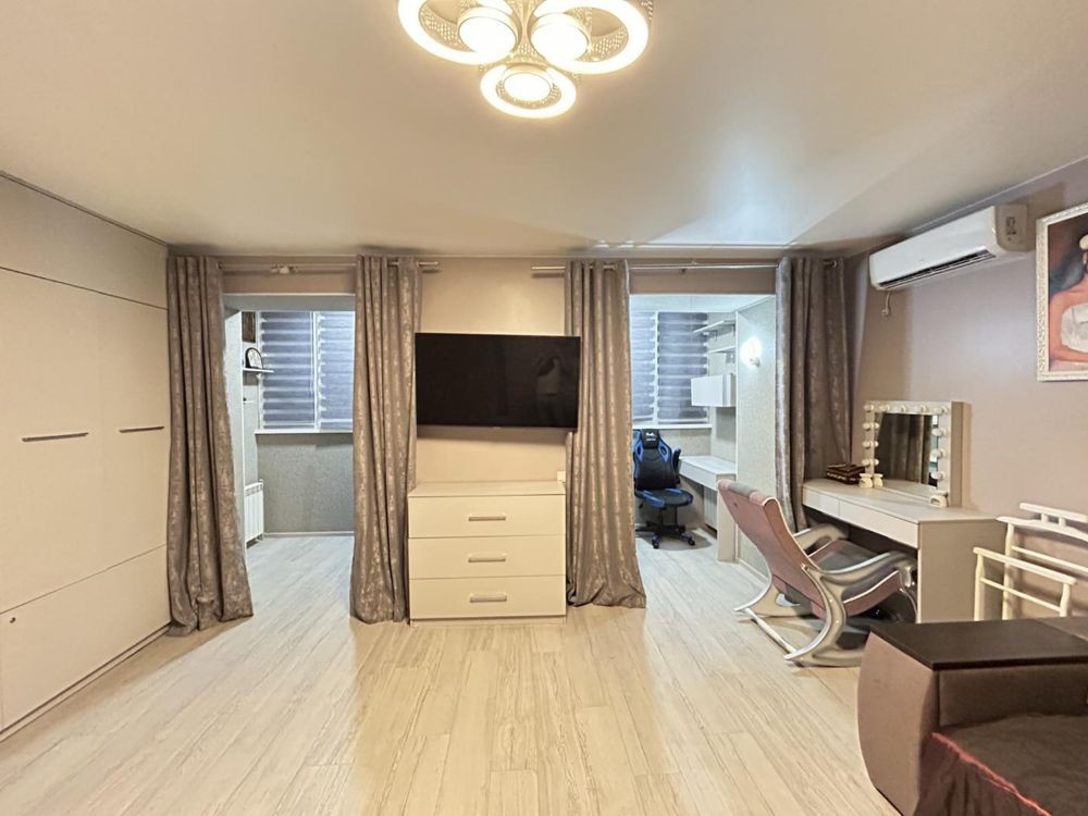 Квартира укомплектована усіма необхідними меблями та технікою (пральна/сушильна машина, 2 кондиціонери, посудомийна машина, холодильник, духова шафа)