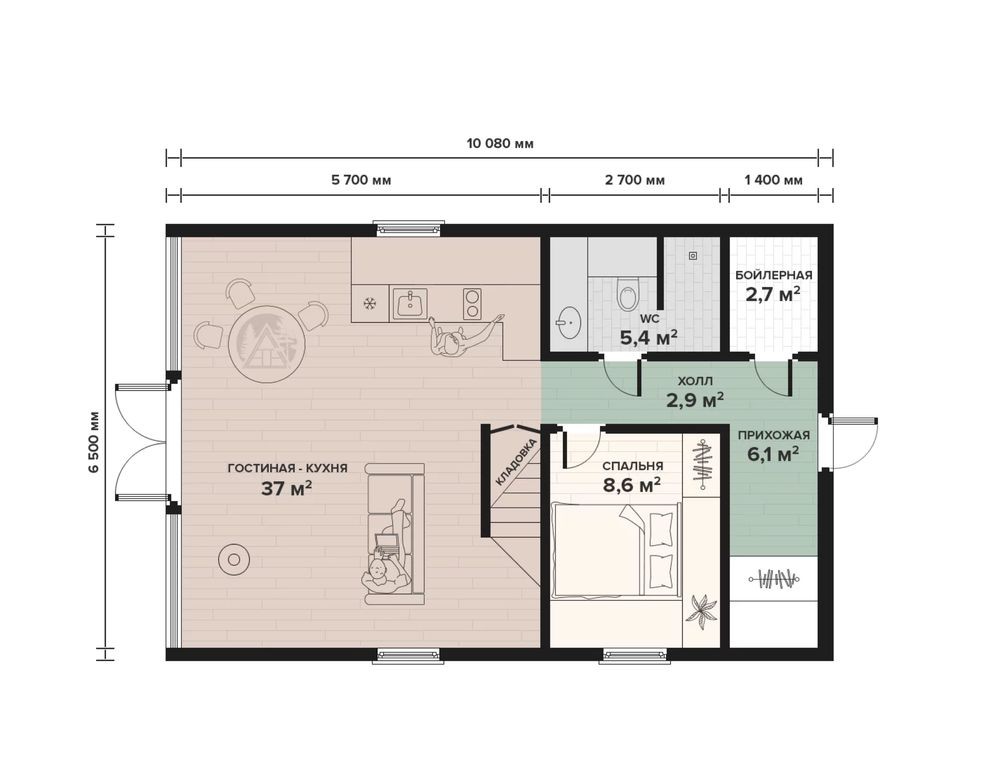 • Общая площадь 77 м2