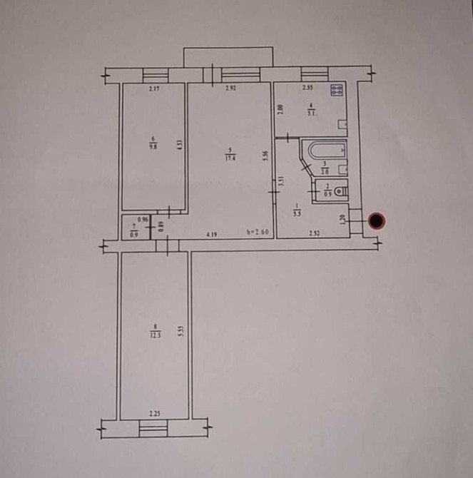 Загальна площа - 55 м кв, кухня - 5 м кв.