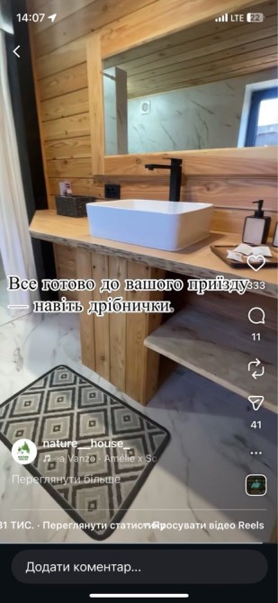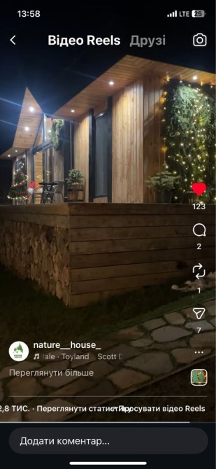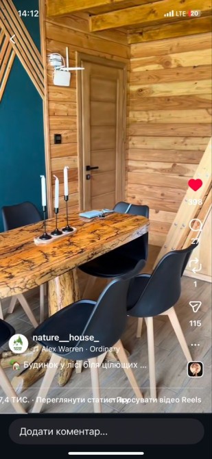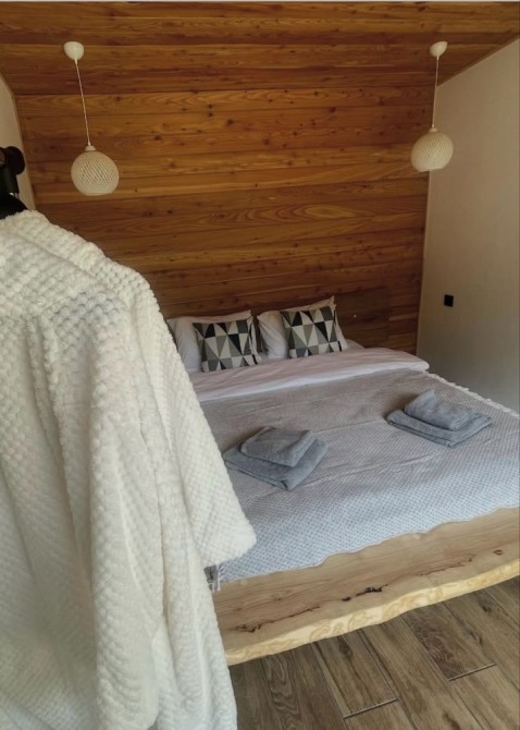 629 Великий зруб для ідеального сімейного відпочинку та святкувань Ви мрієте про незабутній відпочинок у затишному місці серед природи? Наш великий зруб — ідеальне рішення для вашої родини та друзів! Просторий будинок вміщує до 12 осіб і має все необхідне для комфортного перебування. У вашому розпорядженні: 4 затишні кімнати 2 сучасні санвузли Кухня-студія з усім необхідним обладнанням Окремий гостьовий будиночок/баня з двоспальним диваном-ліжком і санвузлом На території зрубу ви знайдете мангал, терасу з садовими меблями та гойдалку для приємного відпочинку на свіжому повітрі. Будинок автономний: оснащений автоматичним генератором, скважиною та газовим опаленням. Поряд розташовані ліс і річка, що додає особливої чарівності цьому місцю. *Умови оренди: Мінімальний термін оренди — 2 доби Вартість за 2 доби: 12000 грн + 1500 грн за прибирання Кожна додаткова доба:7000 грн Оренда бані: 1000 грн . *Важливо: Попереднє замовлення є обов’язковим. Забронюйте свій відпочинок вже сьогодні і насолоджуйтеся спокоєм та комфортом у нашому зрубі!
