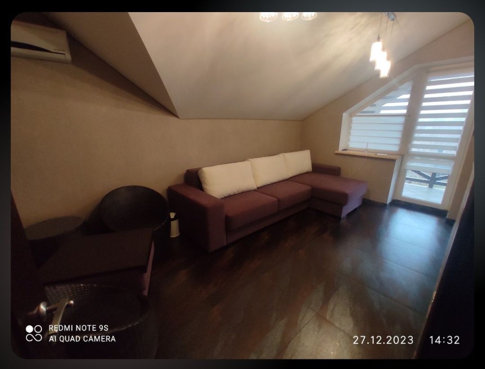 Здається затишний дворівневий номер подобово. Закрита, тиха територія — відчуття власного простору з перших хвилин. Тераса для ранкової кави або спокійного вечірнього відпочинку. Всередині є все необхідне, щоб почуватися як удома: холодильник пральна машина мікрохвильовка чайник посуд рушники та тапочки На другому ярусі — широке зручне спальне місце та телевізор з YouTube Premium і Netflix. На першому поверсі — м’який диван і проєктор для затишних фільмів та серіалів. Безкоштовна парковка поруч із будинком. Також є можливість замовити чан — чудовий варіант для релаксу просто неба. Заселення — з 14:00 Виїзд — до 12:00