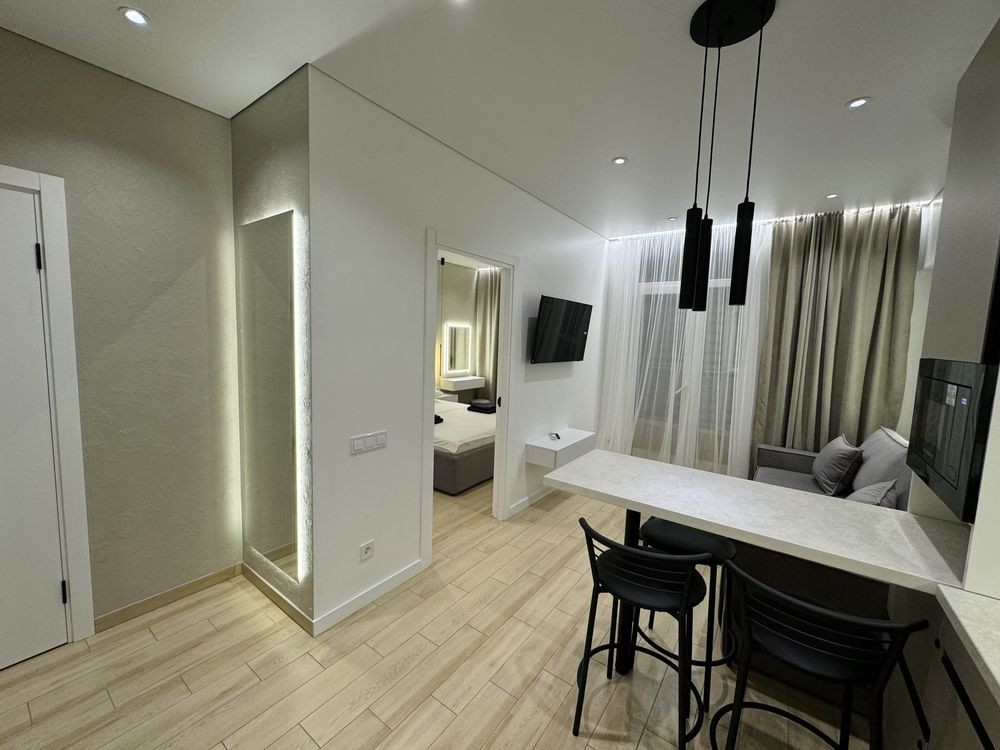 шафа ,електрочайник Smart TV, підігрів підлоги. Є окремо робоча зона . Квартира нова і з дизайнерським ремонтом.ціна залежить від кількості діб і осіб ! Звертайтесь