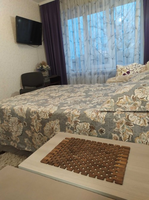Расположена на главной улице в самом центре города – Киевская дом 21. Есть все необходимое: телевизор, кондиционер, интернет wi-fi, горячая вода, все кухонные и постельные принадлежности и т.п. Мебель вся новая. Во дворе можно поставить Ваше авто, также рядом есть платная стоянка. Цена от 490 до 650 гривен в сутки и зависит от дней, соответственно мало дней цена дороже, много дней, то цена стремится к минимальной. Цена почасово от 150 грн. в час, но не менее чем на 450 грн. в дневное время, в вечернее и утреннее время дороже Фото настоящие Выдам документы для командировочных. Есть и другие варианты. Звоните заблаговременно.