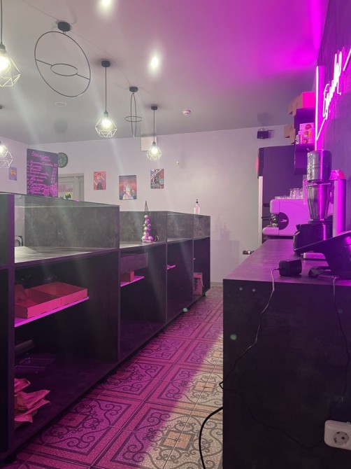 Полностью оборудованное кафе после ремонта с оборудованием( профессиональная кофемашина, холодильники для кондитерских изделий и напитков, современный дизайн интерьера, новая мебель, хорошая электрическая мощность, 50 кВт, два кондиционера. Про этот и другие многочисленные объекты коммерческой недвижимости разной площади, локации, назначения и цены дополнительная информация по телефону.
