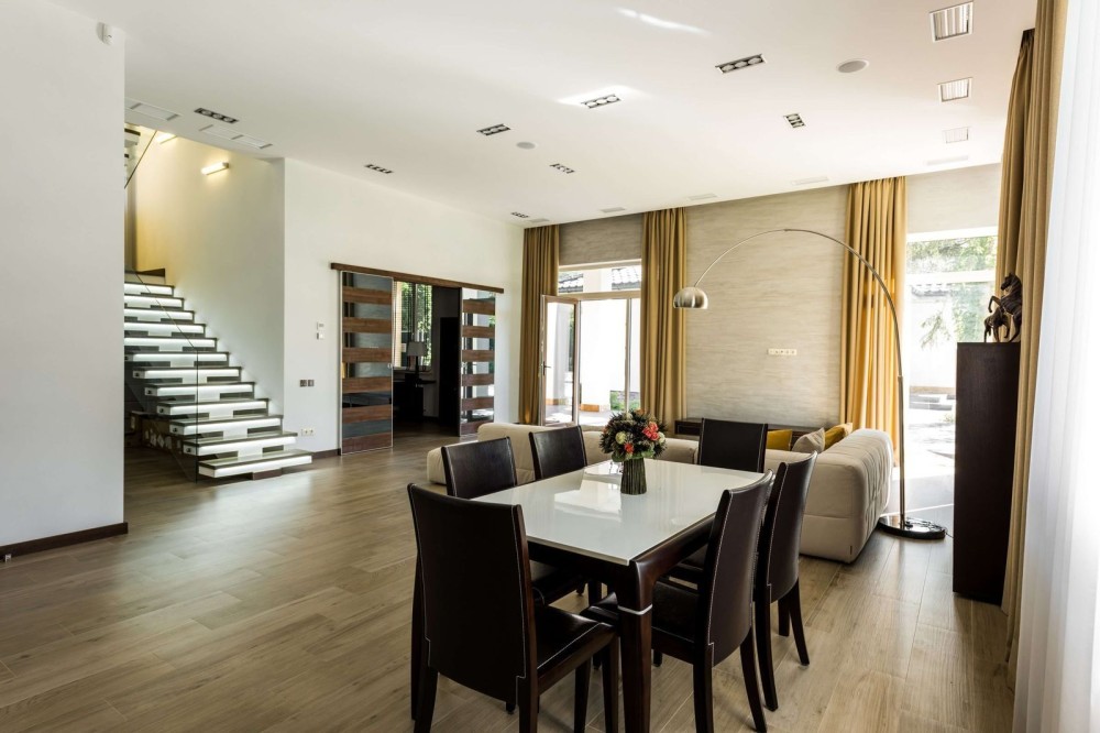 Основной дом 300 м² — воплощение архитектурной утончённости: панорамные окна, дизайнерский ремонт, изысканная мебель — всё готово для жизни без компромиссов.
