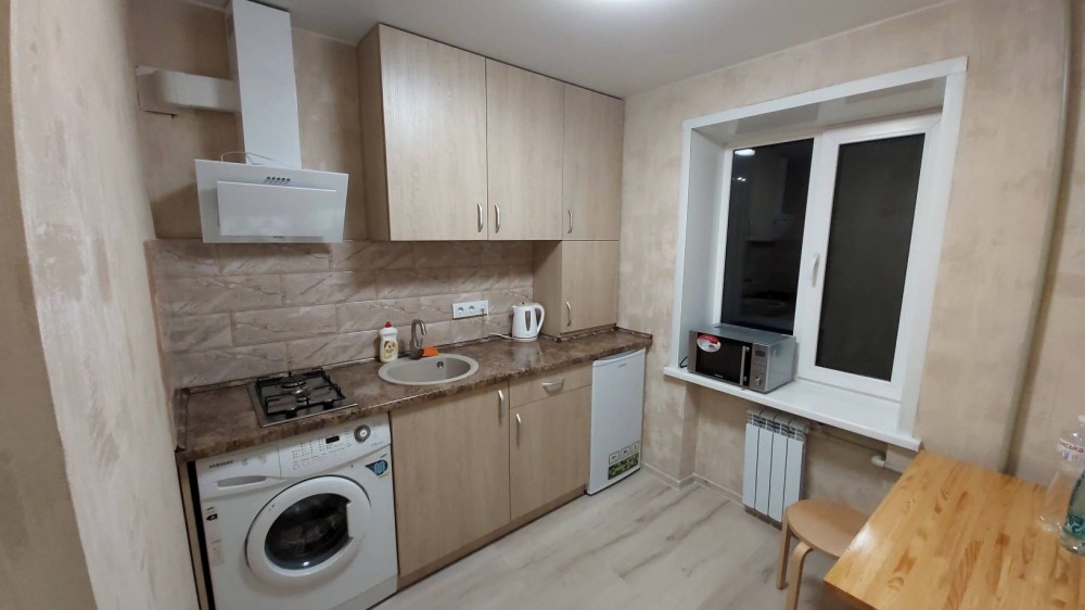 Простая, но чистая и по-домашнему комфортная квартира со всей мебелью включая двухспальную кровать и диван. Возможно комфортное заселение для 3-х человек(пара плюс один). Чистая постель и полотенца, холодильник, вся посуда, горячая вода(новый бойлер), интернет wi-fi, телевизор(кабельное). Цена посуточно 450-600 гривен в сутки зависит от количества дней и человек. Командировочным выдааю документы.