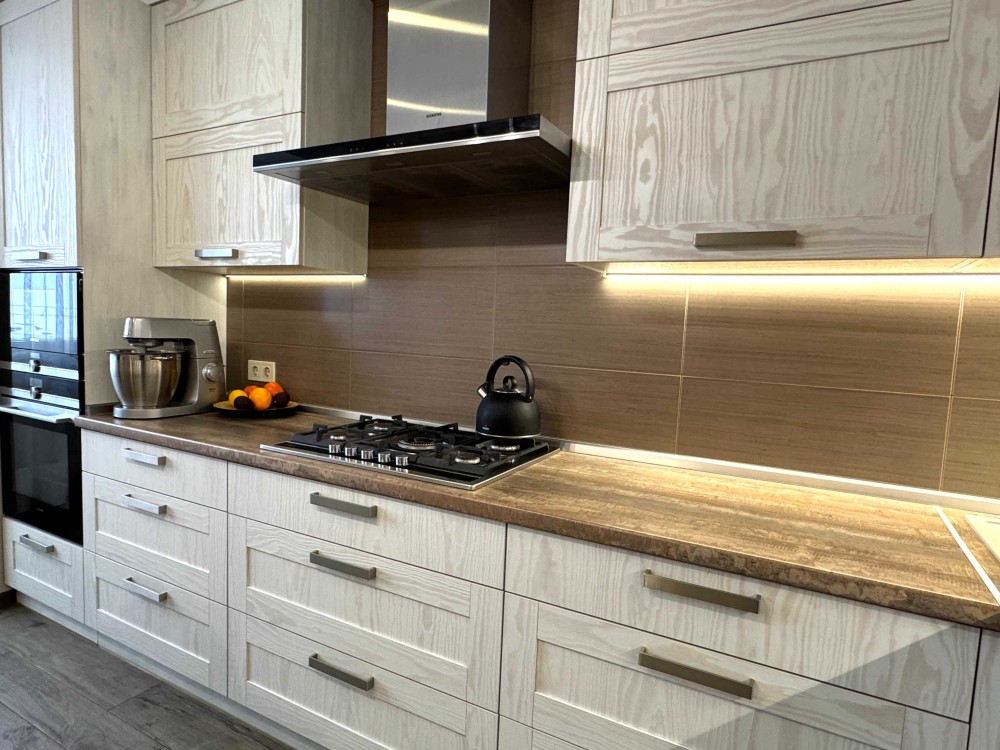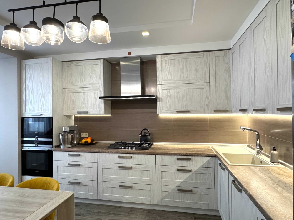 Техніка вбудована Siemens духовка, мікрохвильовка, 5-камфорна газова варильна поверхня, витяжка, посудомийка, дводверний холодильник/морозильник, пралка, сушка тощо.