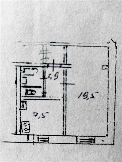 Загальна площа 38,5 кв.м, житлова 19,5 кв.м., кухня 7 кв.м.