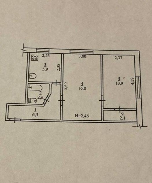 2 кімнати / санвузол сумісний / кухня 6 м² / поверх 1 із 5 / загальна площа 45 м².