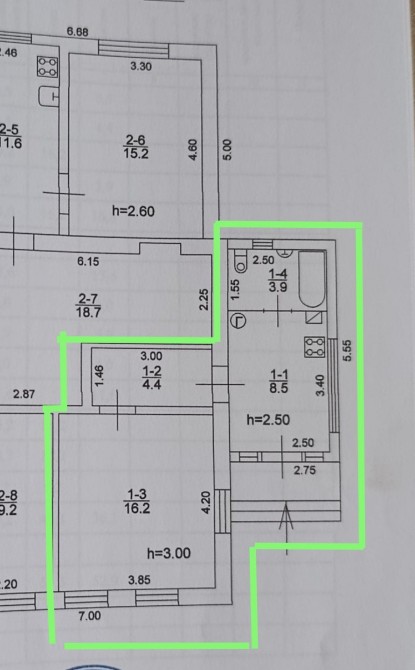 коридор - 4.4 м2, кухня - 8,5 м2,