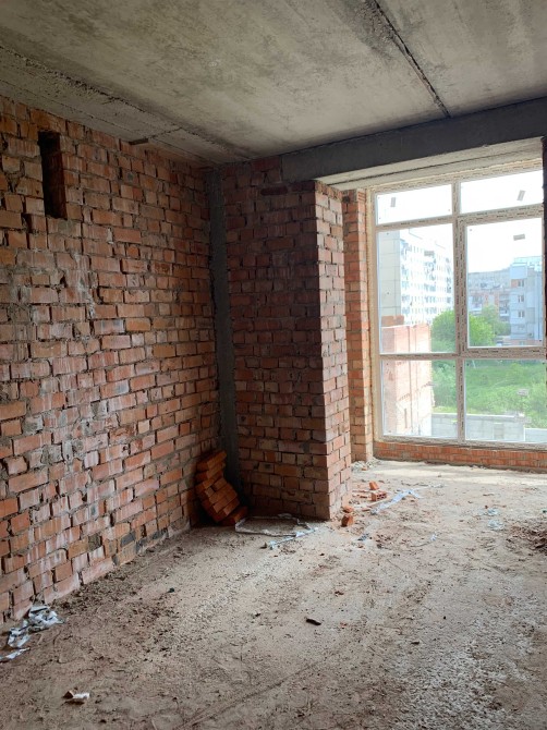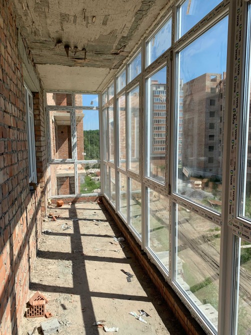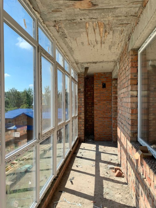 Стіни цегляні (в 2 цегли), перегородки цегляні, штукатурка стін, стяжки, лоджії засклені.