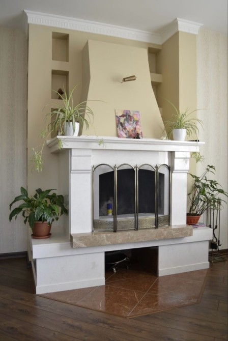 Ремонт из импортных, дорогих строительных материалов. Камин в данном случае не только для эстетического удовольствия, но и позволяет экономить на отоплении дома. Участок 16 соток, ландшафтный дизайн, гостевой домик, зона барбекю.