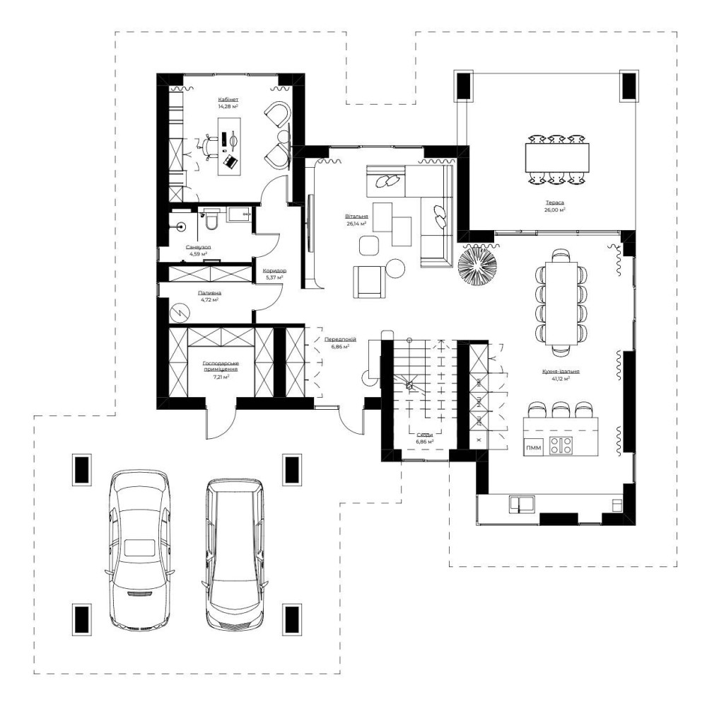 - Преміальна якість будівництва, енергоощадні вікна, клінкерна плитка, натуральне термодерево.