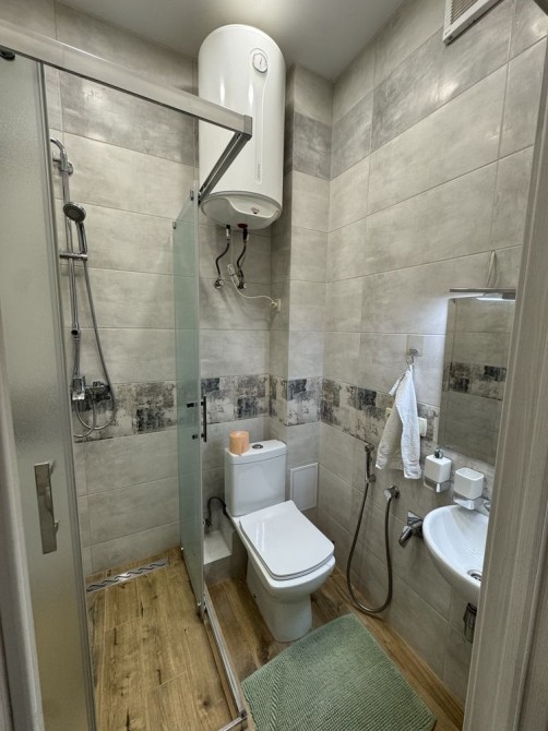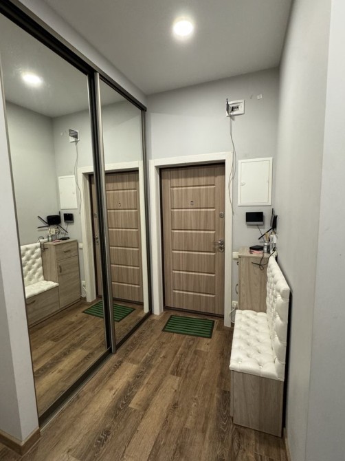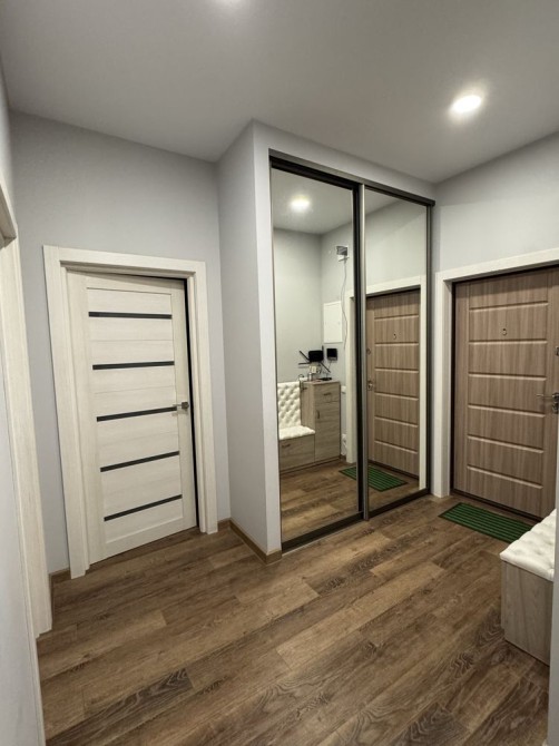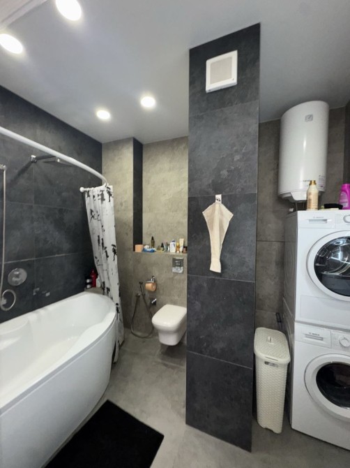 В квартире два полноценных санузла — один с ванной, второй с душевой зоной. Установлена современная сантехника, бойлер, зеркала с подсветкой, качественная фурнитура и много мест для хранения.