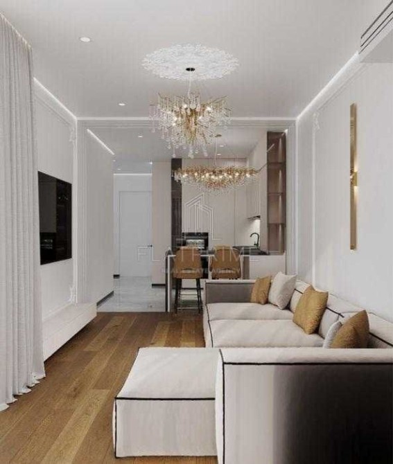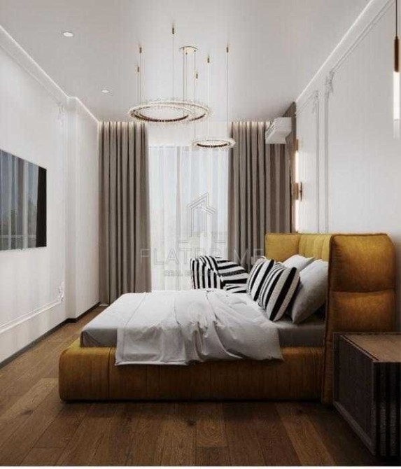 Дві повноцінні кімнати, одна з яких Майстер спальня ( з власним санвузлом та гардеробом) + велика кухня студія, 2 санвузли Новий дизайнерський ремонт ( керамограніт крупний формат, паркет, стеля з тіньовим профілем з підсвіткою (гіпсокартон). 4 види освітлення.
